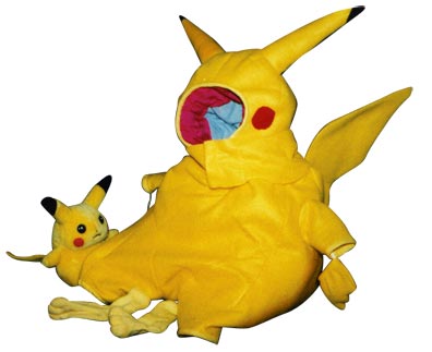 1999 Pikachu for my son. I started the costume when he was 7 months and sitting. By the time he wore it he was 9 months and walking. He was not happy about being stuck sitting in a costume but he was cute. We got 2nd place in the SCAD costume contest. |